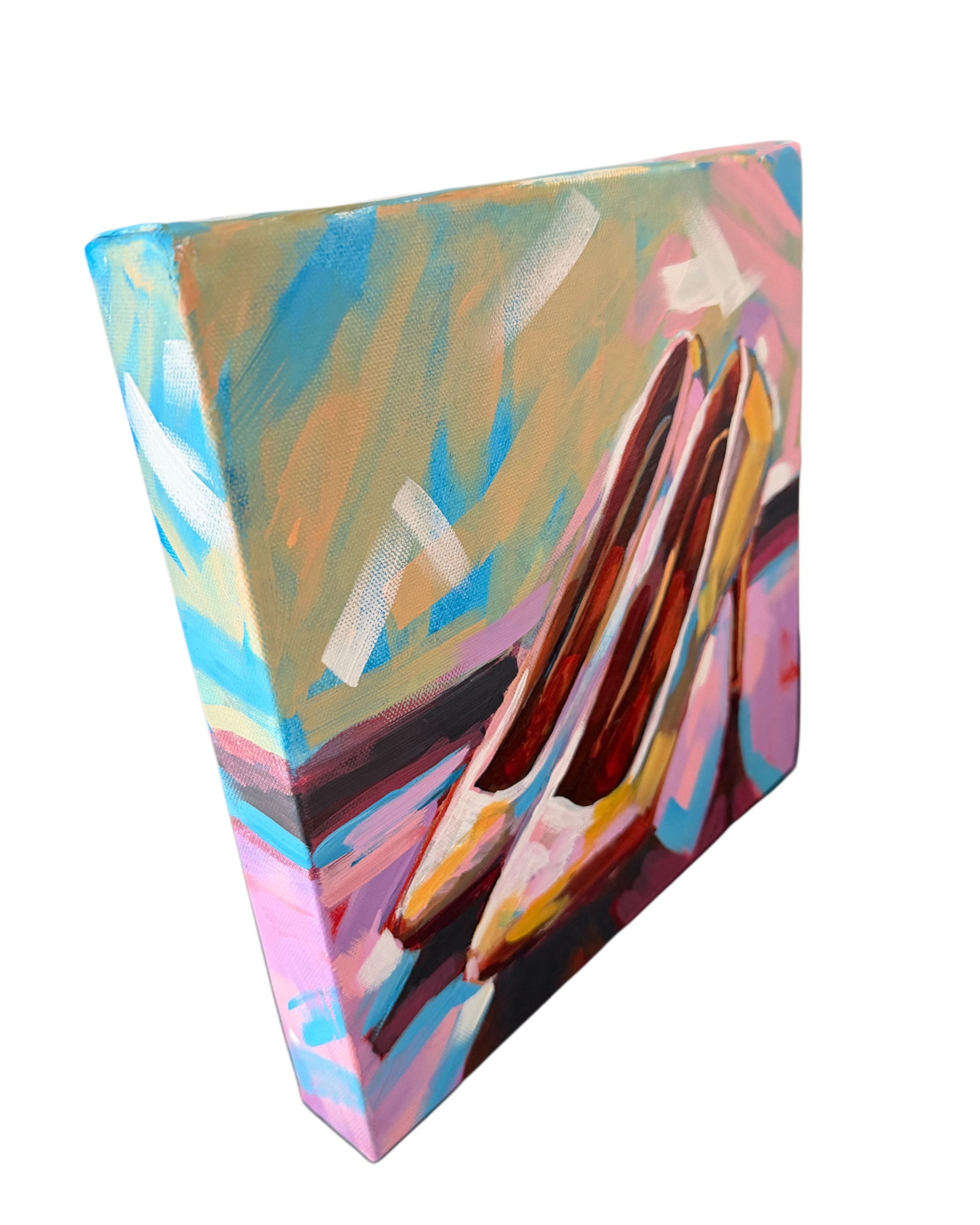Add a touch of feminine flair to your space with this charming 10x10 high heels painting. Rendered in gorgeous pink, blue, and gold tones, it brings playful sophistication to dorm rooms, dressing areas, or anywhere you want a pop of personality. Gallery-wrapped and ready to hang—no framing required.